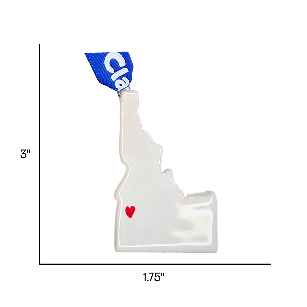 Show your love for the Gem State with this handmade Idaho ceramic ornament! This unique Idaho souvenir features a hand painted heart design placed over the great state of Idaho, making it the perfect keepsake or gift for anyone who loves America's most rugged and naturally spectacular mountain state.
