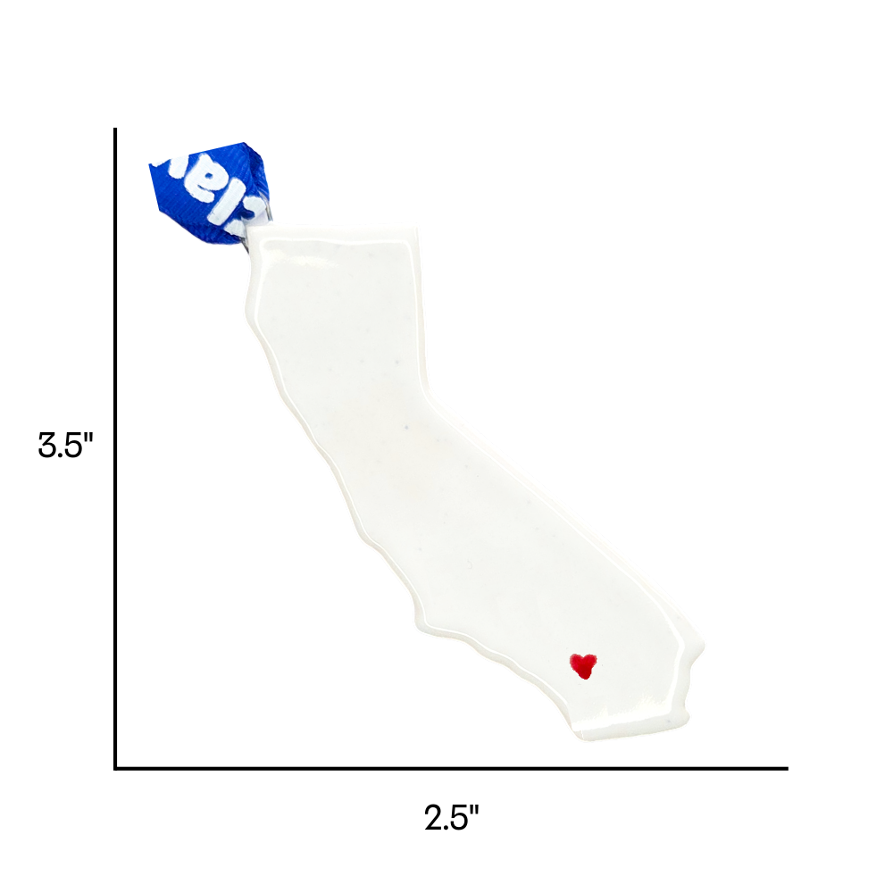 Show your love for the Desert Playground of the Stars with this handmade Palm Springs ceramic ornament! This unique California souvenir features a hand painted heart design placed over Palm Springs, CA, making it the perfect keensake or gift for anyone who loves Southern California's most glamorous and sun-drenched desert oasis.