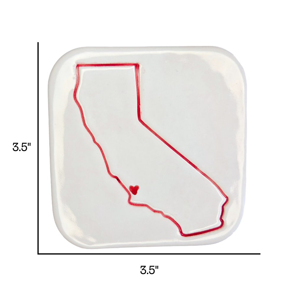 Crafted by hand in San Diego, this ceramic coaster is the perfect gift for California natives, transplants, and anyone who's left their heart in San Luis Obispo. Each 3.5" square coaster features an indented outline of California with a heart marking San Luis Obispo — a subtle, heartfelt nod to the crown jewel of the Central Coast.